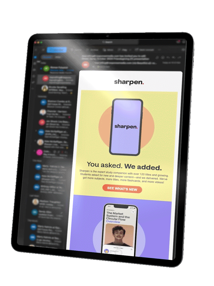 To elevate personalization, we integrated dynamic content and deep-linking capabilities into the emails. This enabled students to navigate seamlessly to specific app features. For students with a McGraw Hill purchase history, we customized emails to recommend relevant textbooks and resources. This reinforced Sharpen’s role as a trusted study partner. By segmenting the audience based on academic milestones, app usage, and purchase history, we delivered highly targeted messages. These messages met each student’s unique needs, driving app downloads, boosting engagement, and fostering long-term loyalty.