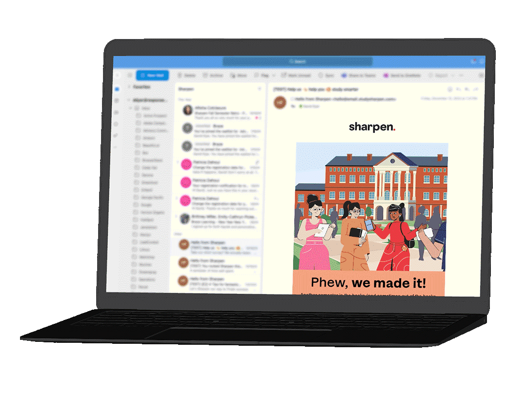 Response Media tackled Sharpen’s challenges with a data-driven, personalized email marketing campaign. Notably, we transformed the CRM program into a vibrant, Gen Z-focused strategy by reimagining emails as engaging, interactive experiences. Incorporating animated avatars, emojis, GIFs, and eye-catching visuals, we reflected Sharpen’s youthful brand personality. This approach naturally guided students through the content. Furthermore, we aligned email content with academic milestones, such as the start of the semester, midterms, and finals. This ensured each communication was timely and relevant.